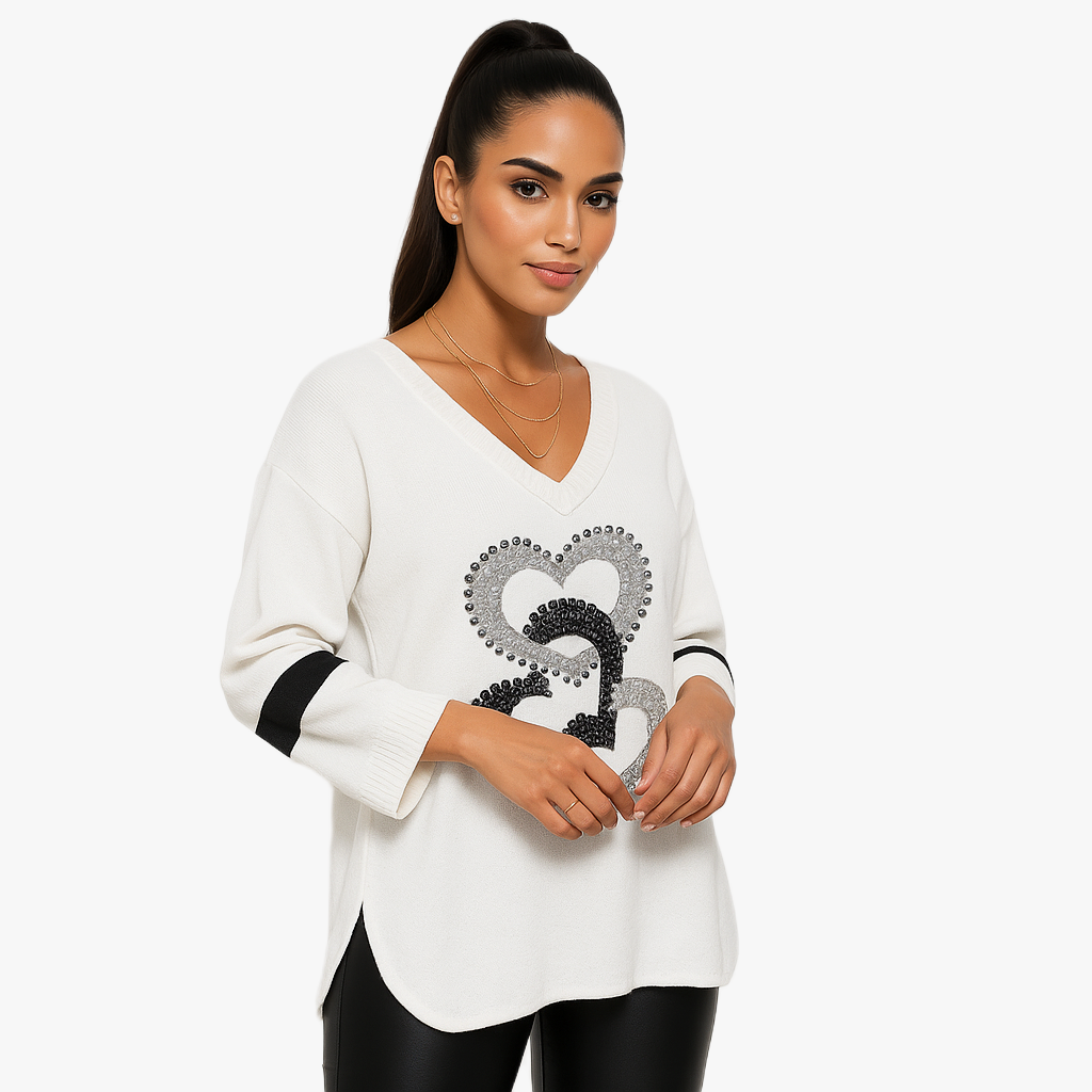 Feminine Bluzka z Długim Rękawem w Serduszka